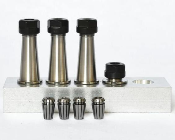 Sada kleštin a držáků pro upnutí nástrojů do vřetene - včetně kovového stojánku. POUZE PRO V2-50.